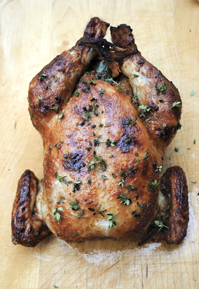 *After 10 minutes, uncover the chicken, carve, and serve hot with your choice of sides. If you have leftovers, save them and make an awesome roast chicken sandwich the next day.