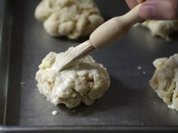 * Using a wooden spoon or your hands, gently incorporate the flour-butter mixture into the buttermilk until you’ve added it all and the dough just holds together. Don’t overwork it or you’ll wind up with heavy shortcakes.