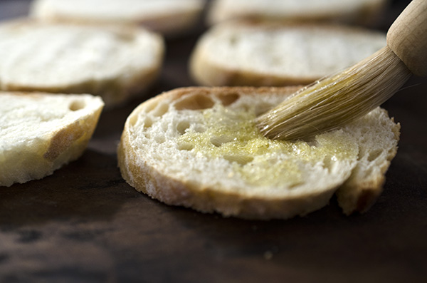 The olive oil you use is going to have a big impact on the flavor of your crostini. Change up your olive oil and you’ll change the whole taste. Some olive oils can be bitter—you should avoid those here. They may be fine for cooking, but definitely not for flavoring. An olive oil that’s fruity or grassy is going to be your best bet. We usually like Spanish or Italian olive oils best. They tend to be bright and fruity or grassy.