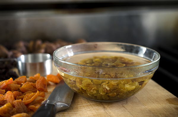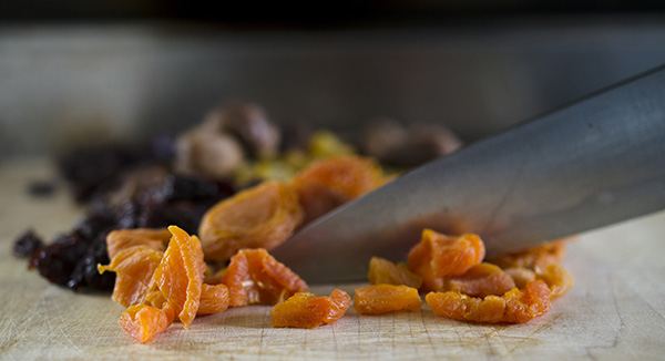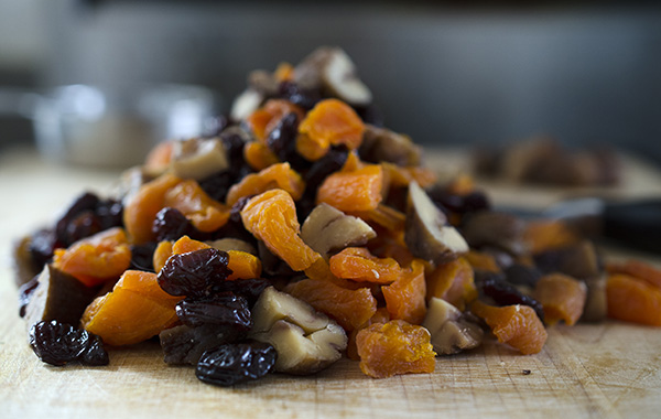 – 1/2 cup dried California apricots, chopped (So preferable to Turkish apricots here—the texture is softer and the color and flavor are brighter. Again, we like to cut them in quarters)