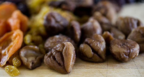 – 3/4 cup chestnuts, chopped (We like to cut them in quarters.)