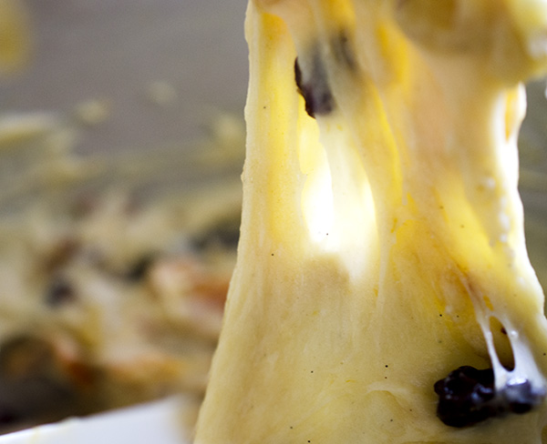 * In a bowl tightly covered with plastic wrap, soak the raisins in the rum and boiling water. We like to set them to soak the night before we start making the Panettone at the same time when we pull out the butter to soften overnight. That way, we don’t have to wait for either in the morning. If you forget or don’t have time, just make sure to soak the rains for at least an hour.