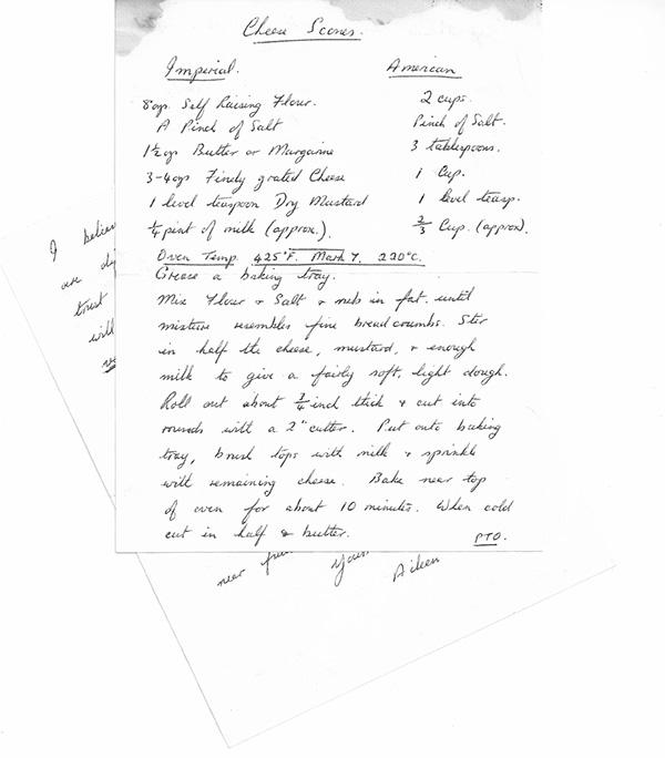 It turned out that they had just decided to rent out rooms only a week or so ago, and if I remember correctly, we were their first or second guests. They told us about their family and farm life in England. We told them about New York and our families, too. Before we left, we promised them that when we had kids, we would bring them back for a visit. After we got home, I wrote Aileen for her scone recipe—email was nonexistent. Her reply was quick. You can see it here.