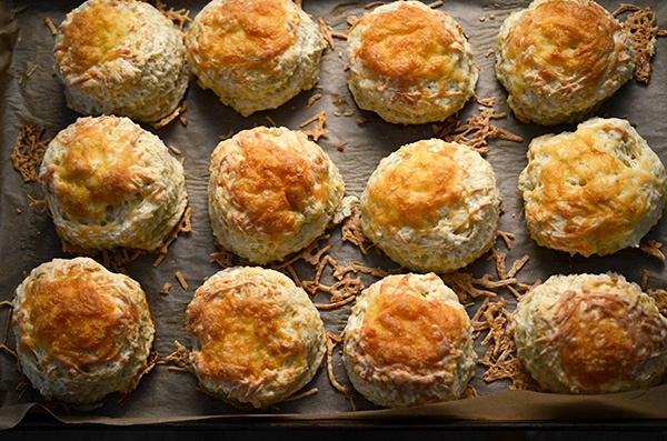 You’ll notice there’s something unexpected in the ingredients list: a touch of dry mustard. Instead of a bringing a pronounced mustard flavor to the scones, it lends a background flavor that brings out the cheddar-y goodness of the cheese. It’s genius.