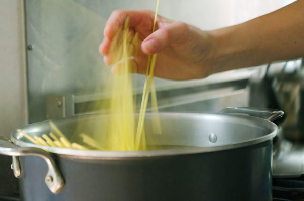 * Set a large pot of well-salted water to boil over medium-high heat.