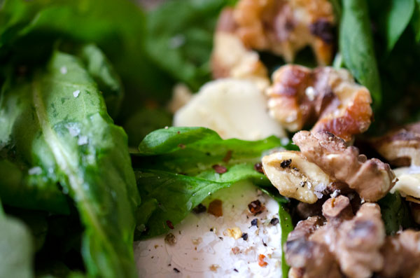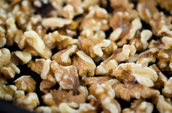 * Toss in the walnuts, salt, pepper, and red chili flakes. Pulse to chop. (You can always add more seasoning towards the end, if you need.)