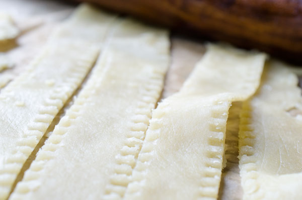 * Roll out the remainder of the dough and cut into 6 approximately one-inch strips for the lattice top.