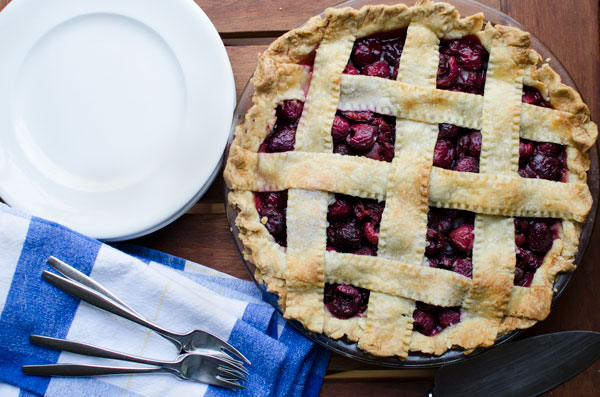 Cherry pie is one of those crucial dishes in the Food Memory Hierarchy. It’s quintessentially summer, nostalgically American, but it’s also such a personal food. Maybe because of its carved-out, idolized spot in American summertimes, maybe because it starts as a shared touchstone that whips up images of picnics and cherry trees and bakers wearing gingham aprons, it’s also one of those dishes that we make our own—and that we do every time we put it on our own tables. We brandish brags of mom’s/dad’s/aunt’s/grandpa’s homemade cherry pie. We make another recipe, another meal, another memory.